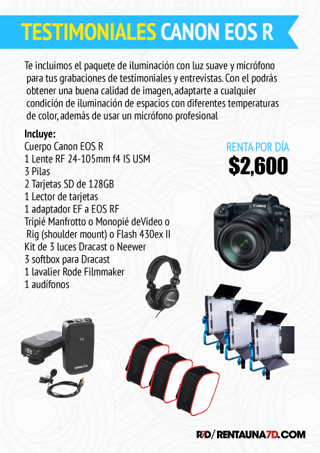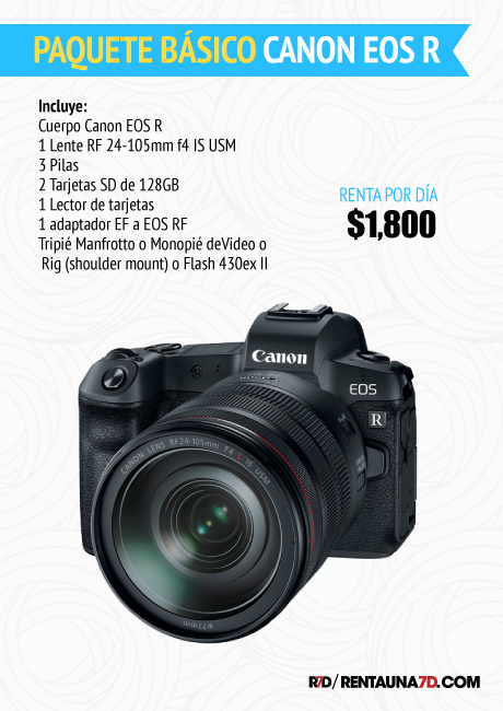 La primer cámara sin espejo de Canon, la EOS R combina una montura de lente rediseñada RF y un sensor de imagen full frame de 30.3mp para un sistema de cámara multimedia único. Su procesador de imagen DIGIC 8 ofrece sensibilidad de hasta un ISO 40,000 nativo, disparo continuo rápido a 8 fps y grabación interna de video UHD 4K 422 con una profundidad de color de 8 bits y velocidad de 30 fps a 480 Mb/s, Full HD 1080p a 60 fps y HD 720p a 120 fps. Su sistema mejorado de Dual Pixel utiliza 5,655 puntos seleccionables para lograr un enfoque rápido y preciso. Su sistema de auto foco es sensible hasta EV -6 que te permite trabajar en condiciones de oscuridad impresionantes tanto en foco como video. Posée un sistema de Estabilización Digital para minimizar el movimiento de la cámara (con crop). Viene con la gamma Canon Log incorporada para un amplio rango dinámico de 12 pasos con ISO 400 y salida por HDMI en 4K de 10 bits 4:2:2 para postproducción de color.