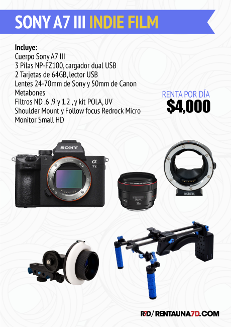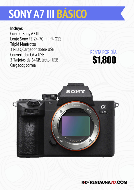 Con un sensor actualizado, la cámara mirrorless Alpha a7 III de Sony es una cámara multimedia (foto y video) para múltiples situaciones de trabajo. Tiene gran rendimiento con poca luz gracias a su sensor CMOS BSI de 24.2MP de fotograma completo y el procesador de imagen BIONZ X, que combinan una impresionante velocidad de disparo continuo de 10 fps y un rendimiento de enfoque automático mejorado para seguimiento de sujetos muy rápido y confiable.