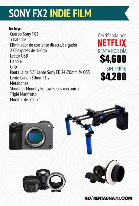 La FX2 es una cámara híbrida de línea Cinema Line, permitiendo captura fotográfica avanzada con funciones de disparo en Log y aplicación de LUTs.