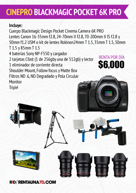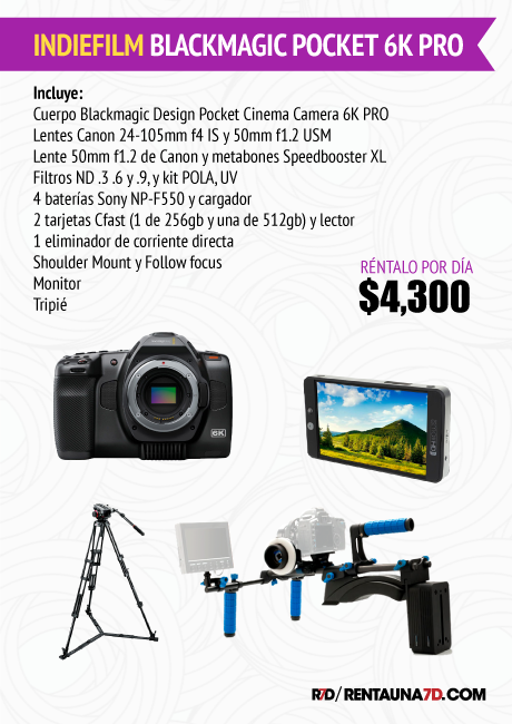 Aunque es un poco más grande y pesada que la 6k y 4k, la cámara 6K Pro mantiene las mismas resoluciones de video de hasta 50 fps en 6144 x 3456, con una montura EF activa de Canon que permite funciones de iris, enfoque automático y zoom mediante comunicación electrónica cuando se usan lentes compatibles.