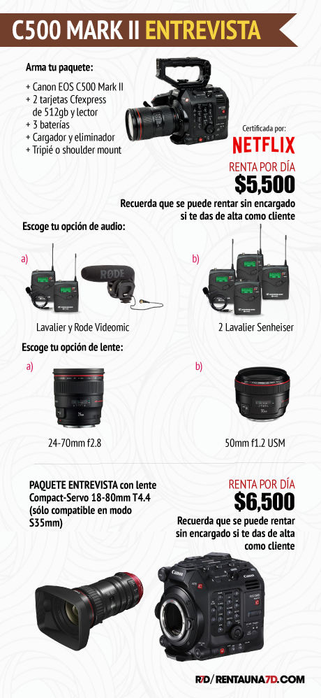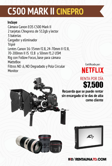 * La C500 Mark II cuenta con precio especial por Semana para Series de TV, Documentales y Largometrajes.