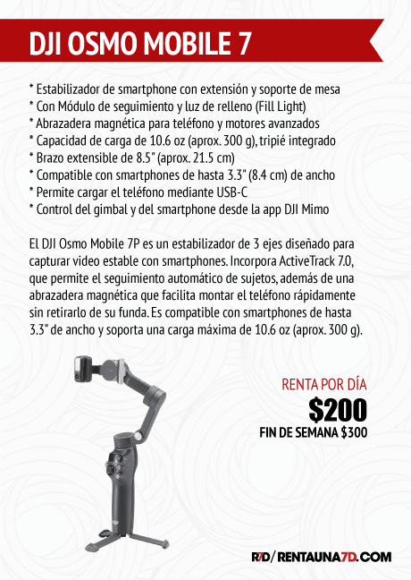 - Patas incorporadas para colocar el gimbal sobre una mesa