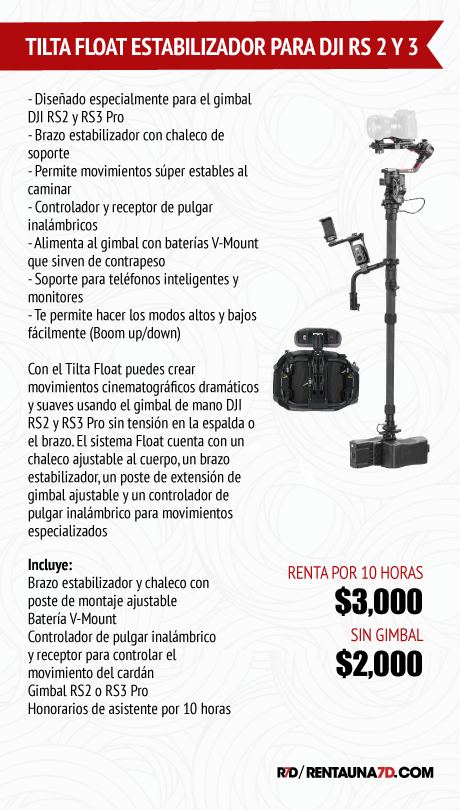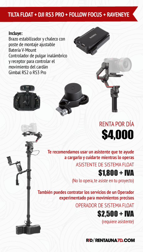 El equipo se renta con asistente de Gimbal que se encarga de montar y balancear el equipo y ayudarte con la operación. NO opera el gimbal. Si requieres un operador es necesario cotizarlo aparte
