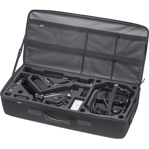 El sistema Float admite un equipo de gimbal RS2 o RS3 Pro y se monta en el brazo estabilizador. El brazo admite aproximadamente 80cm de movimiento hacia arriba y hacia abajo manteniendo sumamente estable. El sistema crea un soporte cómodo y alivia la carga de la espalda y los brazos lo que permite movimientos sumamente precisos