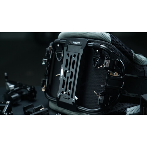 Las baterías V-Mount se montan en el extremo inferior del equipo y te permiten alimentar los accesorios y el gimbal a través del poste de extensión (además funciona como contrapeso). El soporte para teléfono inteligente te permite agregar un teléfono inteligente para controlar el gimbal y obtener una vista previa de la imagen, y el soporte para monitor te permite agregar un monitor opcional