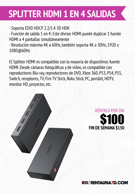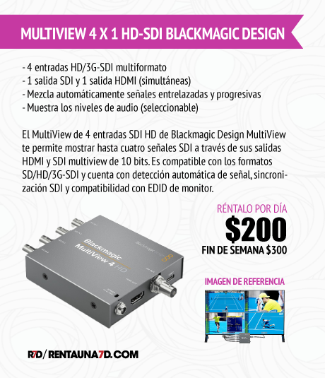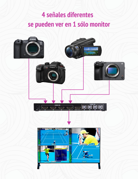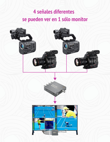Te permite insertar la imagen de hasta cuatro cámaras HDMI (u otros dispositivos) simultáneamente en una sola imagen Full HD 1080p por ejemplo una pantalla.