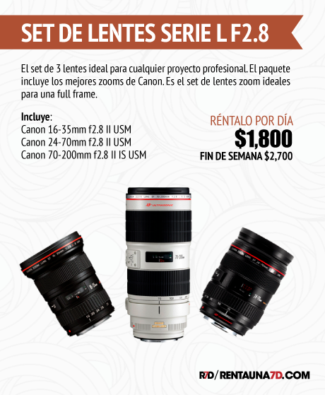 El set de 3 lentes ideal para cualquier proyecto profesional. El paquete incluye los mejores zooms de Canon. Es el set de lentes zoom ideales para una full frame.