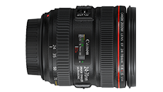 Rediseñado, el 24-70mm es el más deseado por los fotógrafos. La versión II de este lente minimiza la aberración cromática así como la reducción de borrosidad de color alrededor de los bordes del objeto. Tiene un equilibrio de color excepcional. Enfoque automático ultra silencioso. Es sumamente nítido y con un bello bokéh.