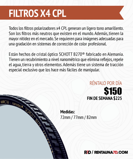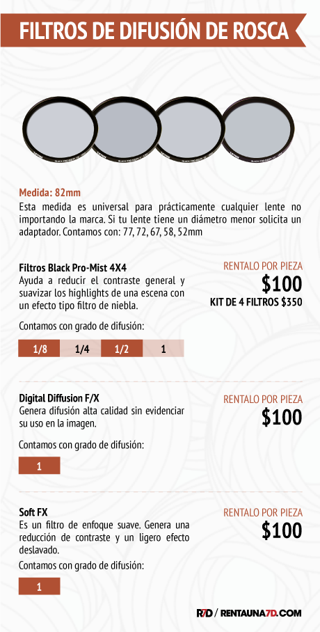 El Filtro Black Pro-Mist ayuda a reducir el contraste general y suavizar los highlights de una escena con un efecto tipo filtro de niebla. Es especialmente útil para suavizar las arrugas faciales y otros defectos. Los filtros Pro-Mist proporcionan muy poca pérdida de detalle en toda la imagen. Genera una reducción de contraste. Genera efecto de niebla en los highlights.