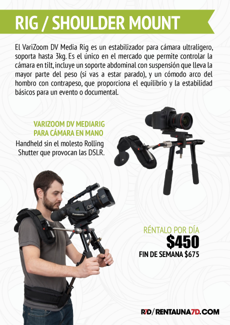 Es un rig rápido y modular lo que permite modificarlo para múltiples usos. Sus manerales pueden rotar 180º para permitir su uso lateral o para tomas a bajo nivel de manera sencilla, o modificarse al gusto del operador.