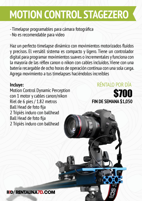 A/B, velocidad y loop directamente desde los botones del motor o mediante la app para iOS y Android, donde además se habilitan ajustes avanzados de time-lapse como intervalo, número de fotos y exposición. El motor guarda en su memoria los puntos de recorrido para reutilizarlos en sesiones posteriores.