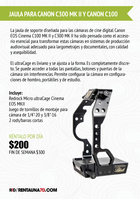 La jaula de soporte diseñada para las cámaras de cine digital Canon EOS Cinema C100 MK II y C300 MK II ha sido pensada como el accesorio esencial para transformar estas cámaras en sistemas de producción audiovisual adecuado para largometrajes y documentales, con calidad y asequibilidad.