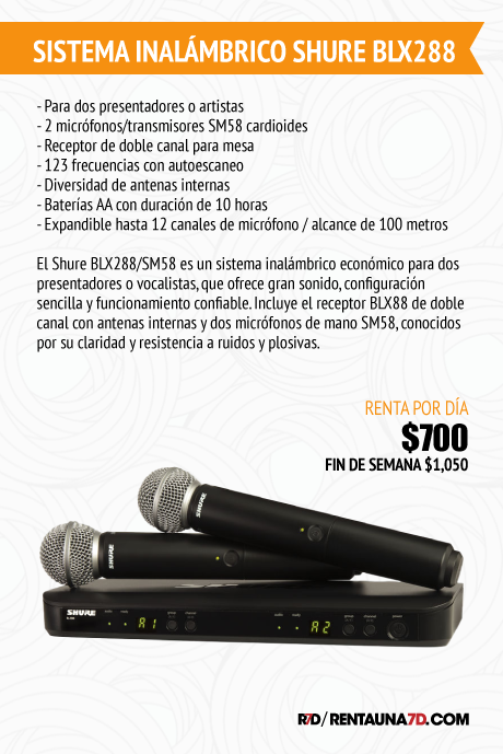 1 receptor de doble canal Shure BLX88 (antenas internas)