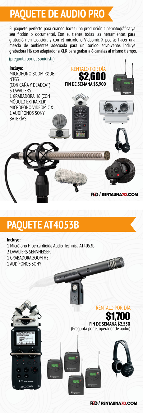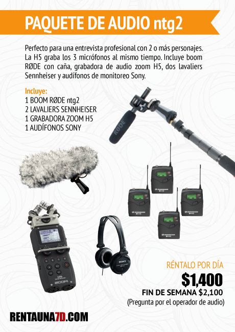 Paquete de micrófonos para una entrevista profesional con 4 o más personajes. Se pueden grabar hasta 4 micrófonos al mismo tiempo en la grabadora H5 (con el módulo xlr) y de ahí conectar a tu cámara con un cable miniplug a miniplug o xlr doble.
