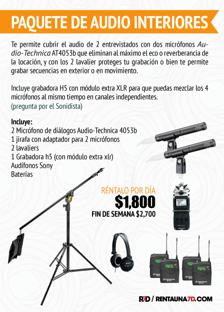 Paquete de micrófonos para una entrevista profesional con 2 o más personajes. Se pueden grabar 2 micrófonos al mismo tiempo en la grabadora Tascam DR-40 y de ahí conectar a tu cámara con un cable miniplug a miniplug o xlr doble.