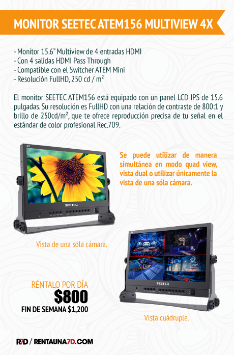 - Monitor 15.6” Multiview de 4 entradas HDMI