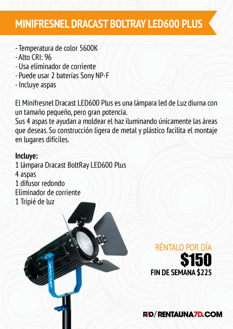 El Minifresnel Dracast LED600 Plus es una lámpara led de Luz diurna con un tamaño pequeño, pero gran potencia.