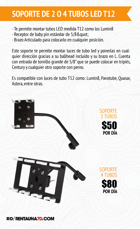 SOPORTE DE 4 TUBOS POR DÍA $80+ IVA
