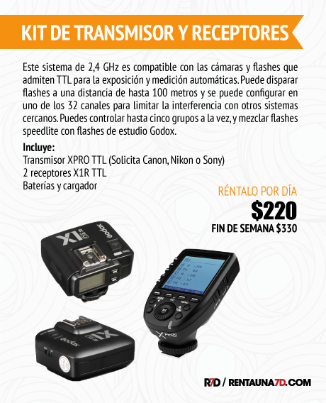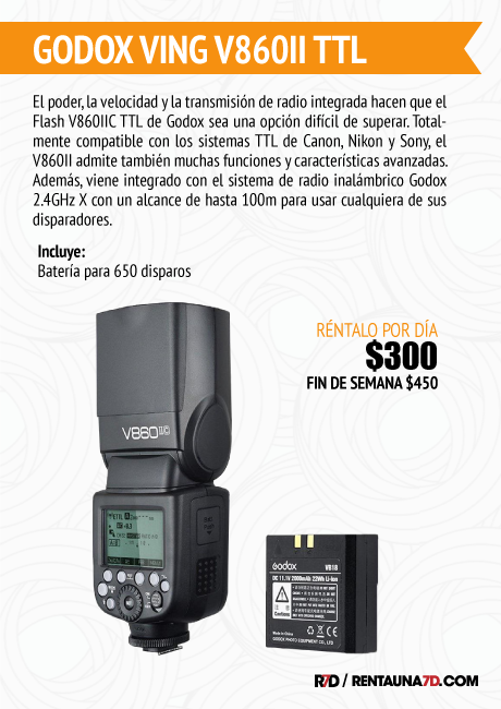 - Compatible con TTL y High Speed Sync con Canon, Nikon y Sony