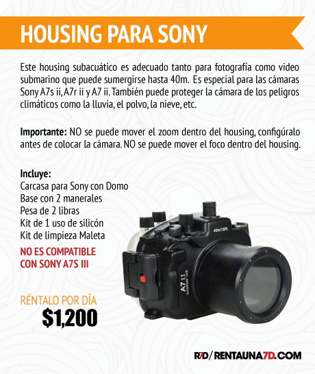 Este housing subacuático es adecuado tanto para fotografía como video submarino que puede sumergirse hasta 40m. Es especial para las cámaras Sony A7s ii, A7r ii y A7 ii. También puede proteger la cámara de los peligros climáticos como la lluvia, el polvo, la nieve, etc.
